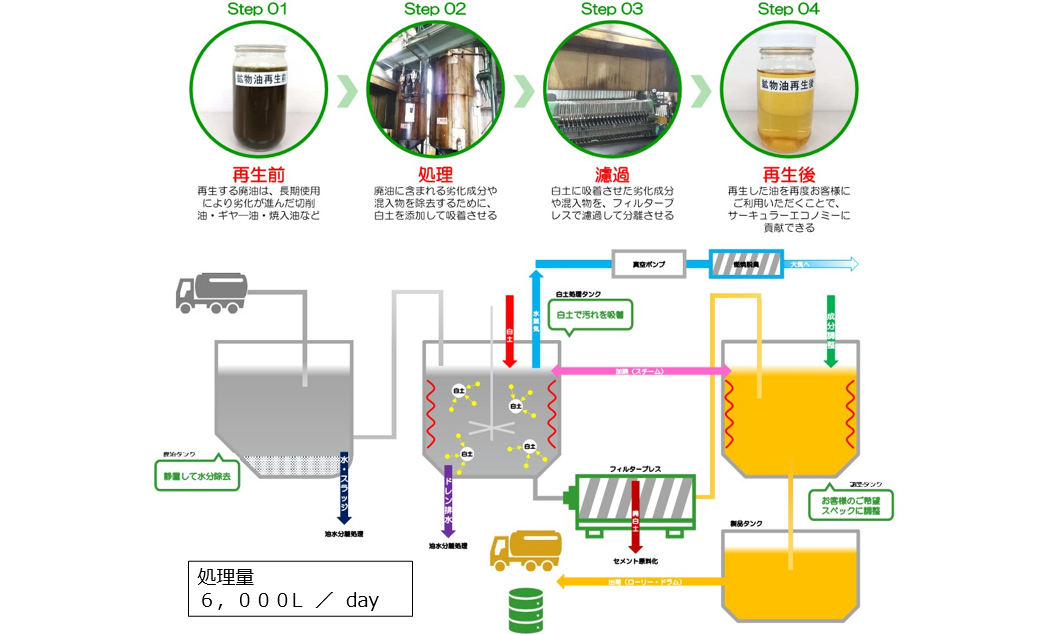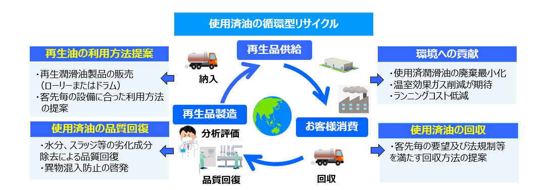 廃棄される潤滑油の廃油を再生潤滑油として再び資源に変える。