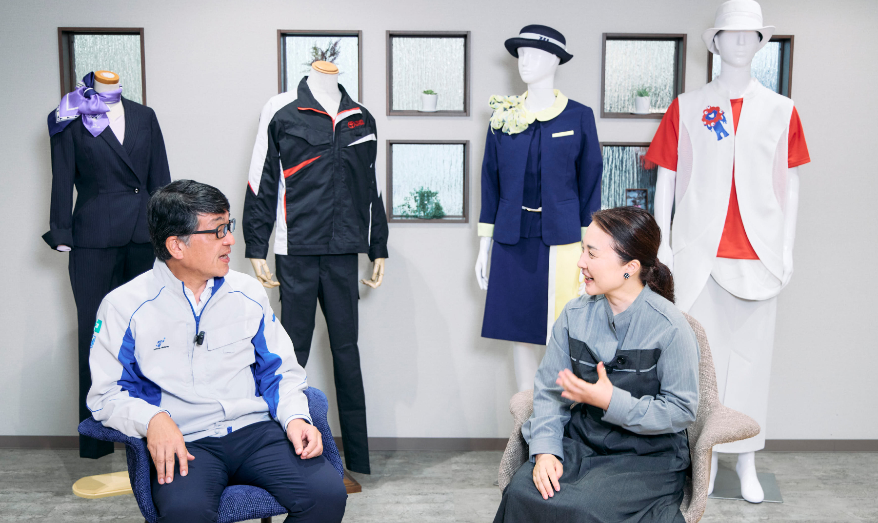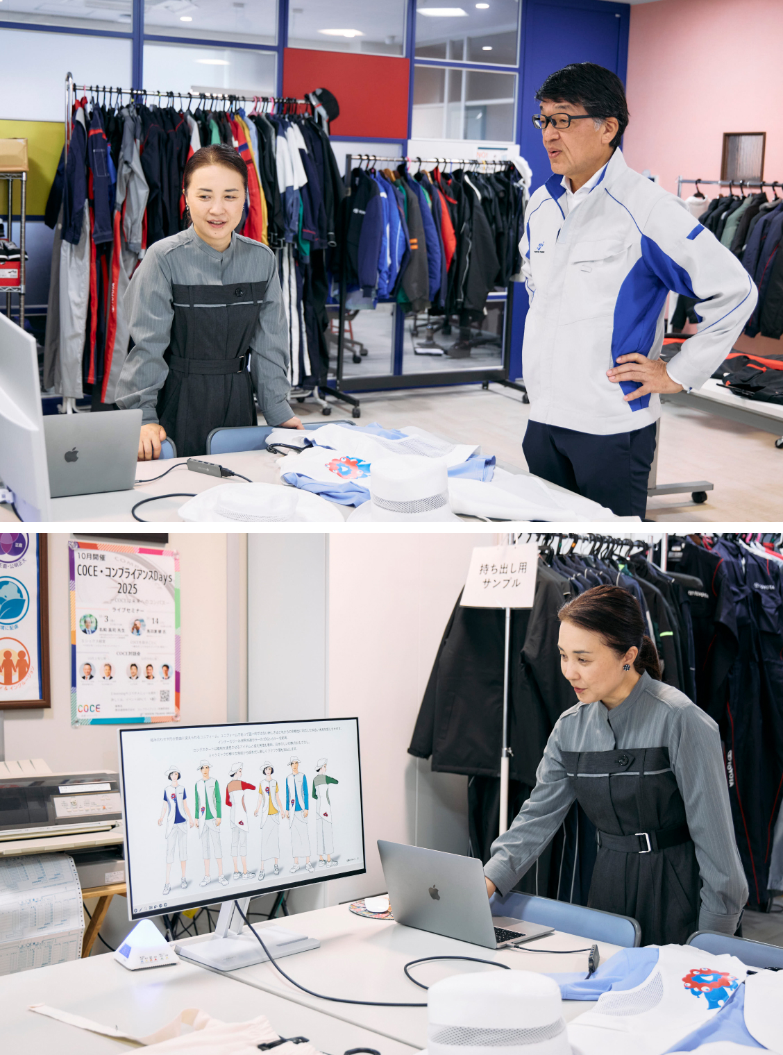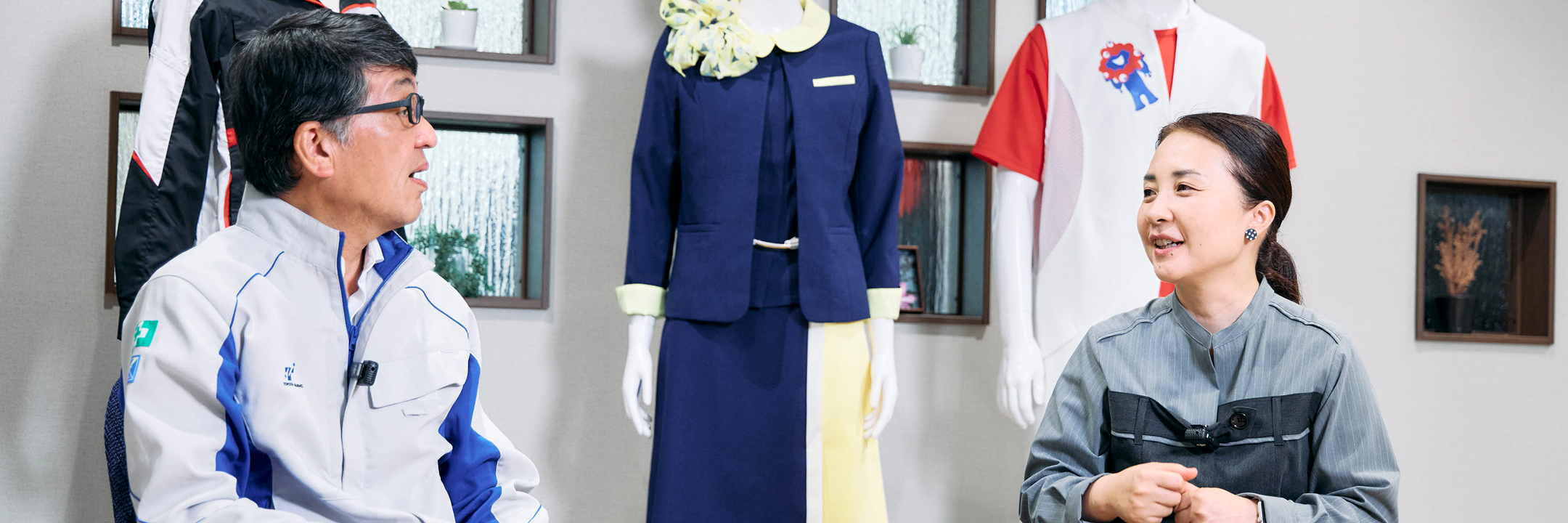 ユニフォームって作業現場のイメージが強いけど、展示会やガイド、セールスなどはもっとチャレンジできるよね。面白い分野だと思う。